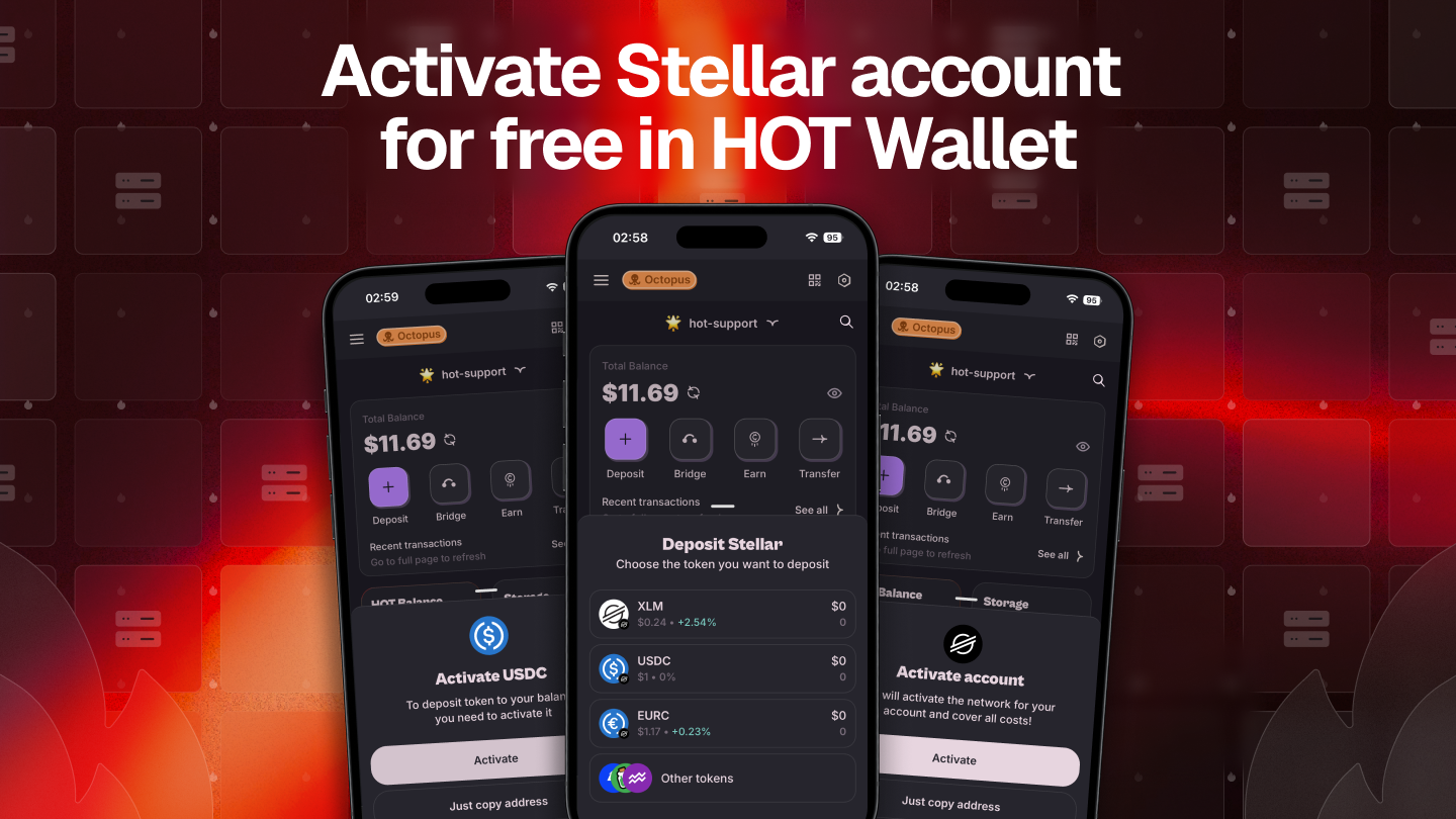 Most wallets treat Stellar as an afterthought. HOT Wallet is built around it. With full support for Stellar crypto assets, free account activation, built-in swaps, and the only working Stellar bridge on the market - HOT Wallet is the best Stellar lumens wallet available today.